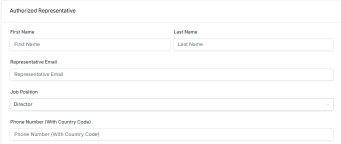 Next is to fill out the Authorized Representative. This is essential when getting your phone number inside of Mundayn.
